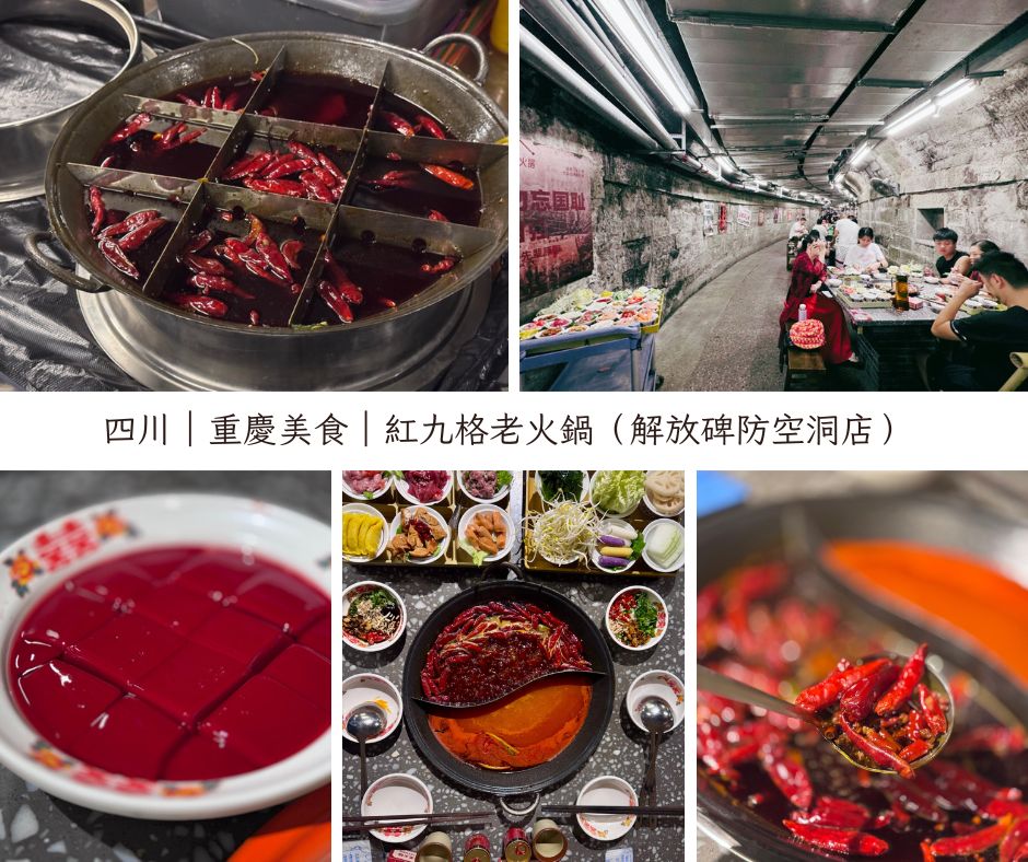 重慶美食|紅九格老火鍋(解放碑防空洞店)~太熱了,中午躲進防空洞吃九宮格麻辣鍋,18 碗蓋碗菜好豪氣。