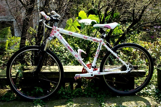 朋友還把自行車送去烤漆,上頭彩繪滿了櫻花