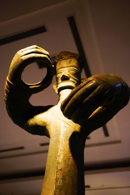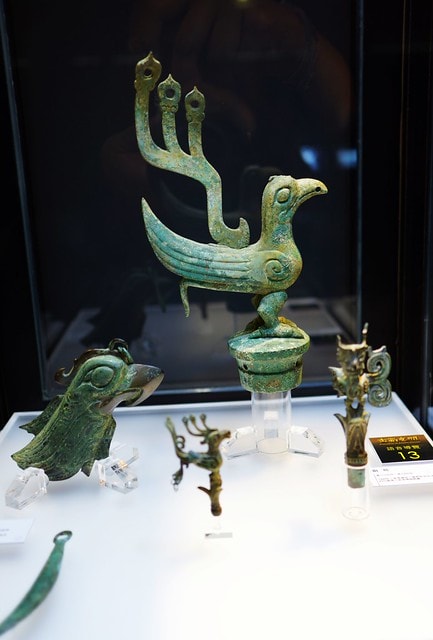三星堆的銅神樹,上頭的花樣很精緻,也相當完整