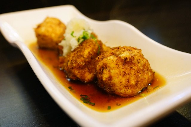 雖然是號稱是日式炸豆腐,但似乎一點兒都不日式,超台的啦