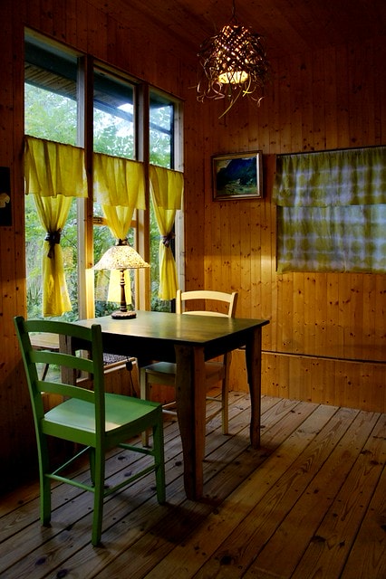 在木條空間中降溫又能看著門外的陽光舞動