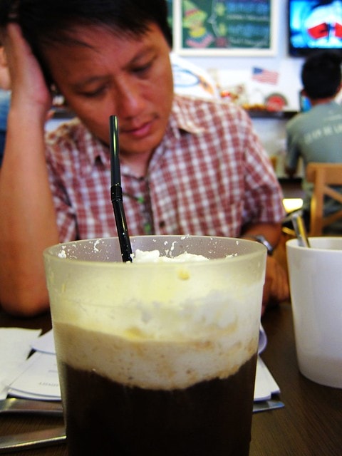 首先上來的是飲料,雲跟皮皮分別點了美熱咖非與美式冰咖啡