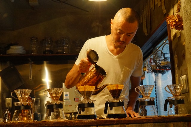 有點像是修行人的模樣;服務人員招呼雲座在吧檯前,且幫雲收放了包包以及購物袋;