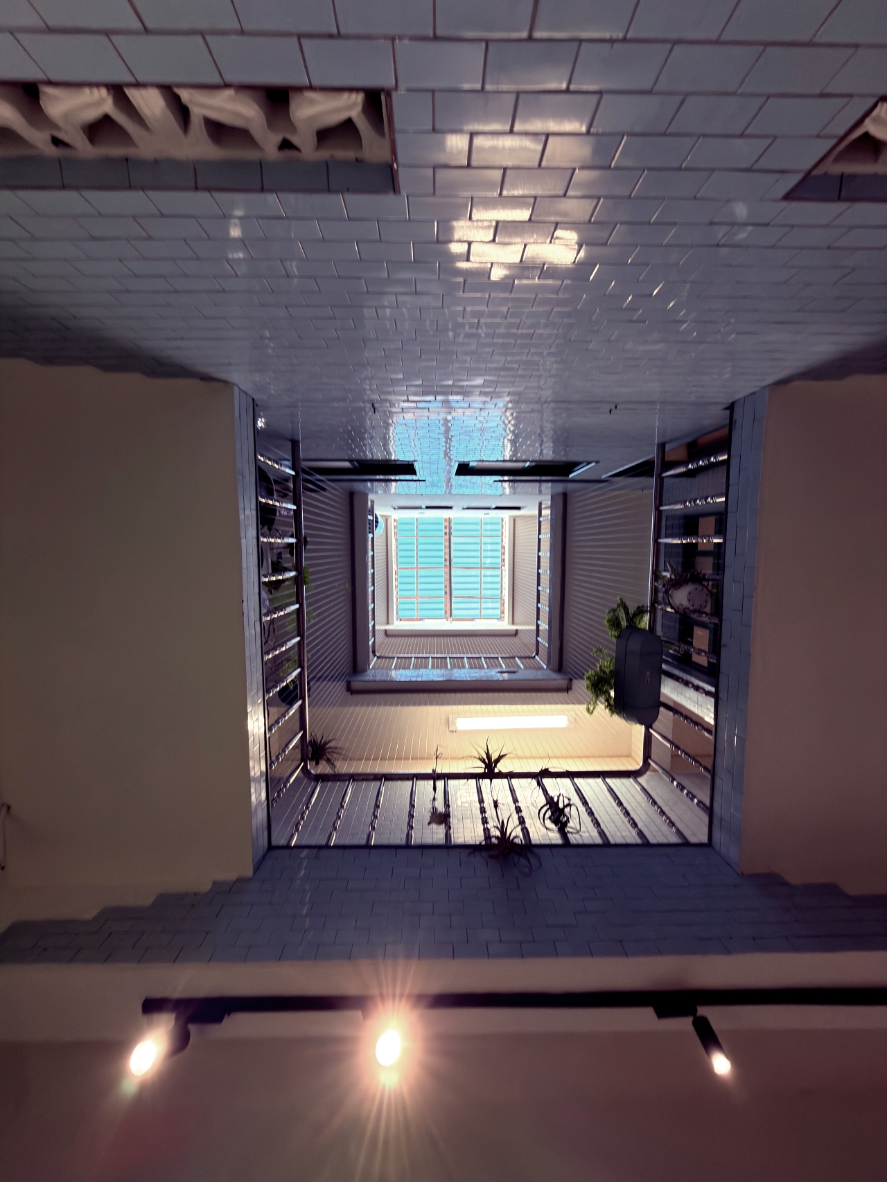 老闆說:「把天井窗戶打開時,這裡會非常通風。」