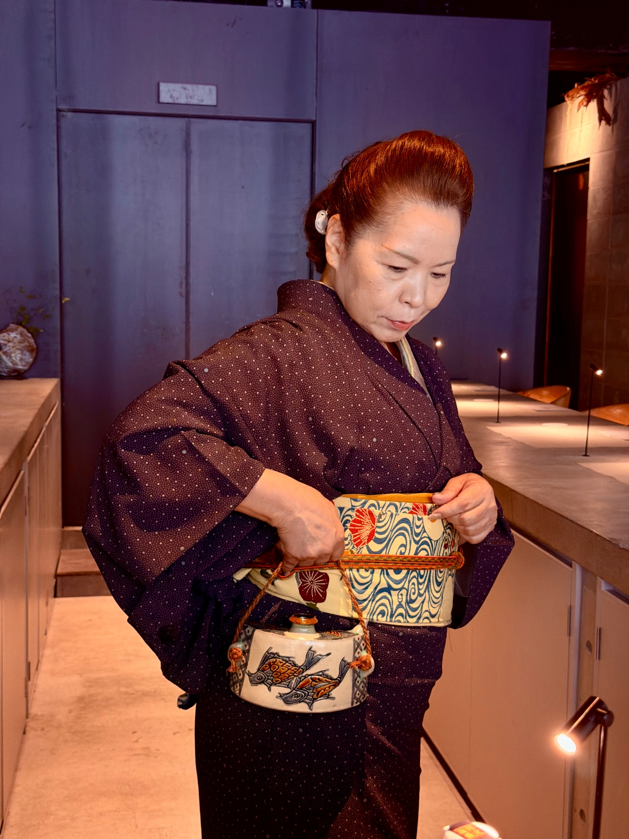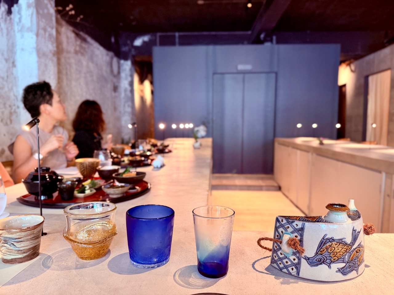 老闆娘展示的陶器、料理從「伸展台」般的小門端出、