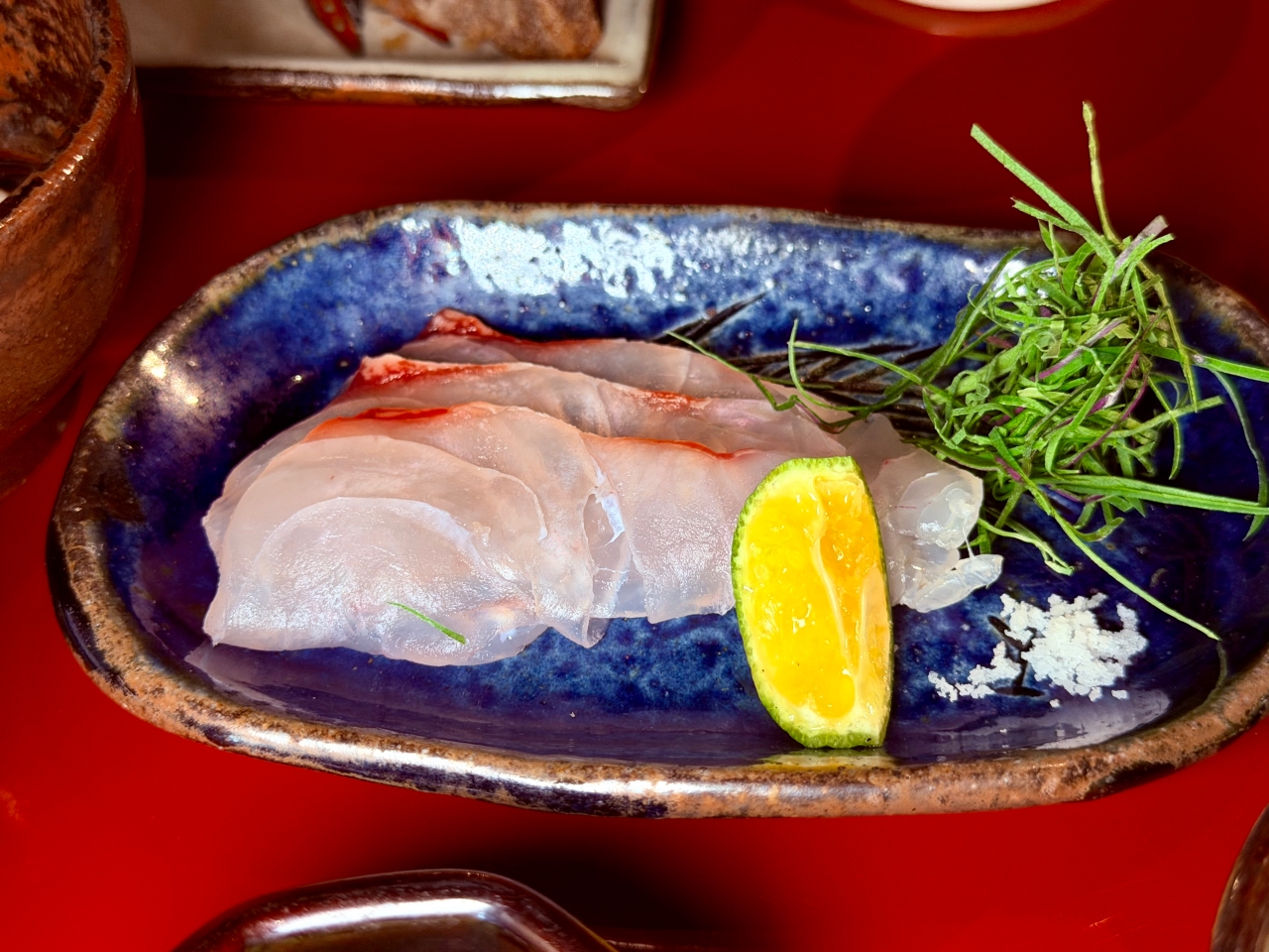 隆頭魚刺身,搭配當地海鹽提味,鮮甜帶彈性。