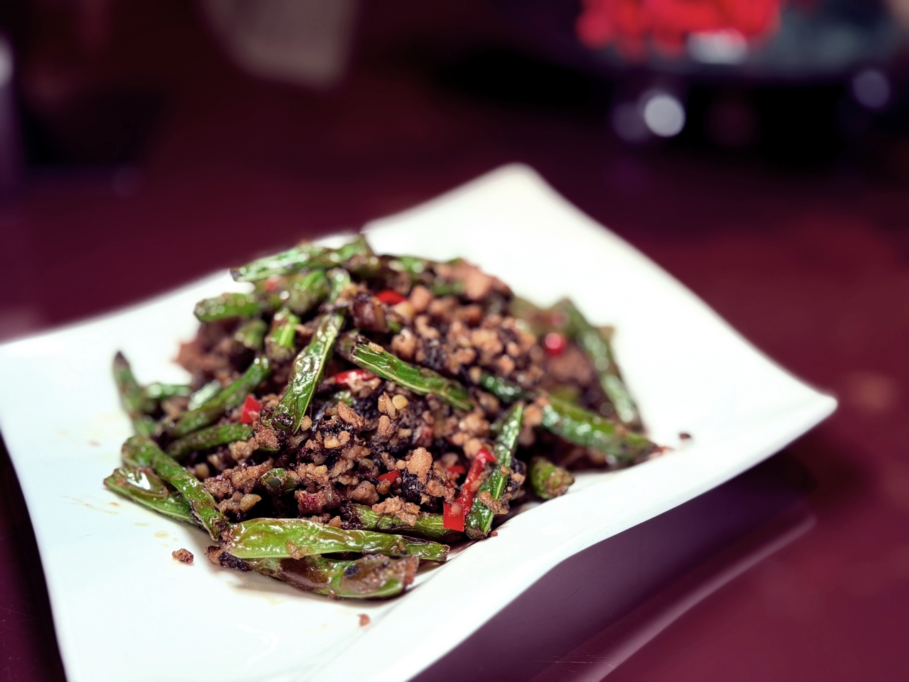 四季豆炒得翠綠清脆,欖菜與肉末的香氣交織,