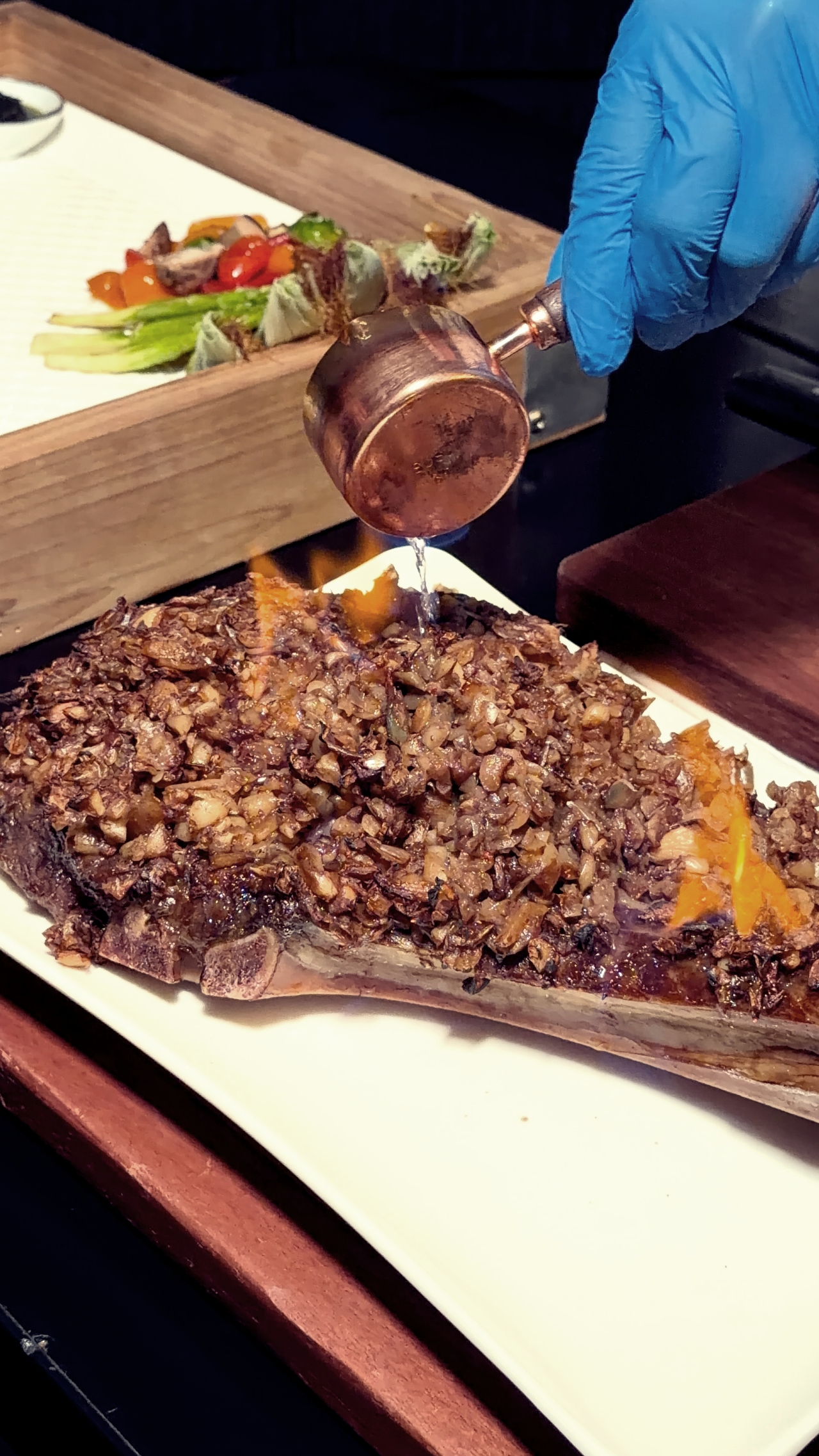 戰斧牛經過 6 天工序處理——舒肥、奶油煎香,再以高溫爐烤鎖住肉汁,