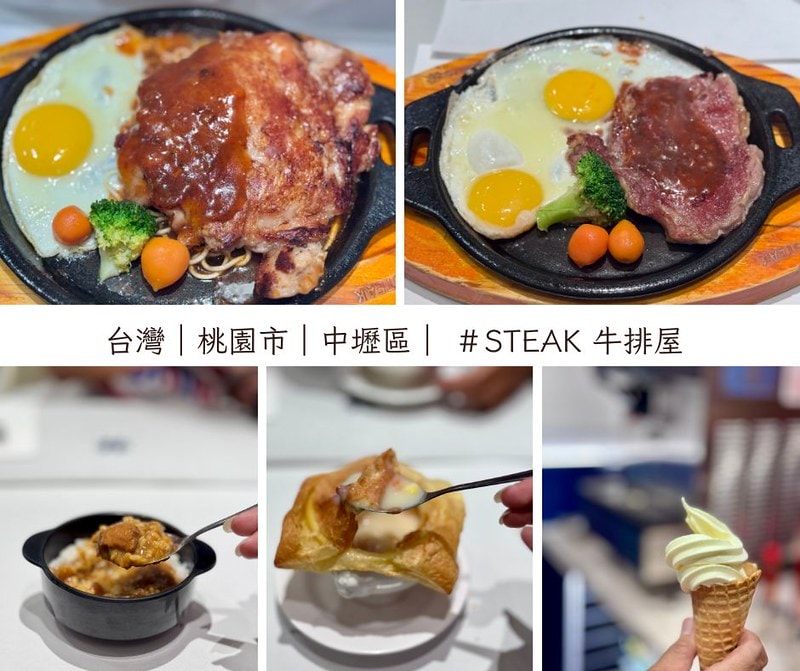 位於桃園中壢新生路的 #STEAK 牛排屋, 以實在價格提供經典排餐,沙朗牛排紮實多汁、脆皮雞腿排外酥內嫩, 還有附酥皮玉米濃湯、咖哩飯無限供應,自助飲料吧任你取, 最後再用綿密奶香的霜淇淋…