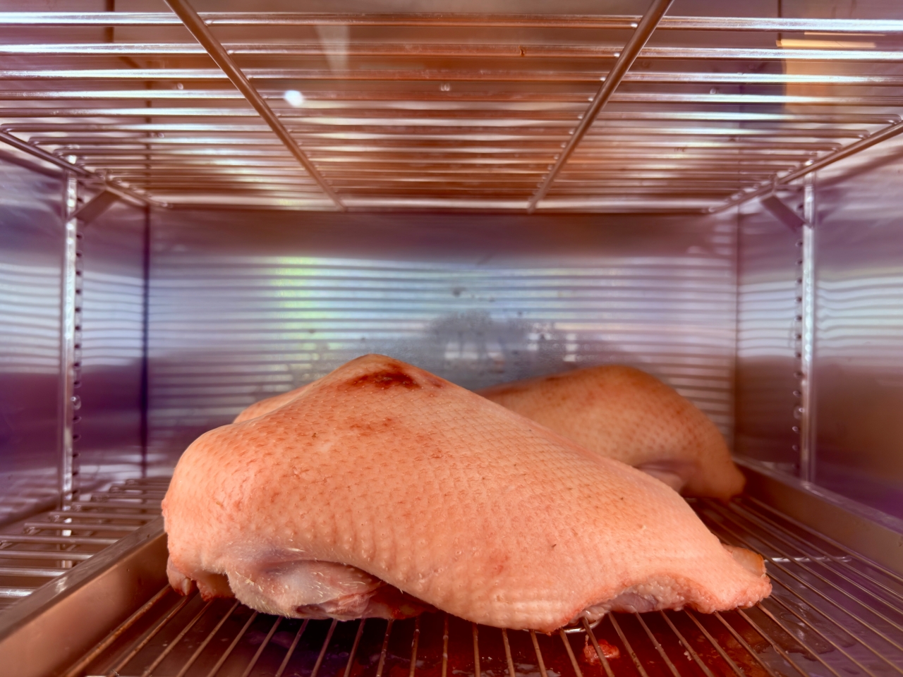 在去廁所途中通道的冰櫃中瞧見了正在熟成的鴨肉,